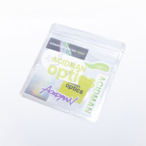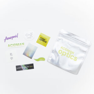 外層にはOpticsロゴのプリントされた、2次利用可能なジップバッグを使用。