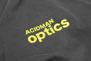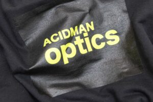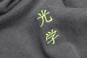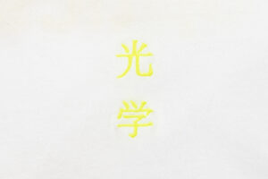 フロント中央にアルバムタイトルである”光学”の文字を蛍光カラーで刺繍した一枚。